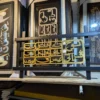 Loh-e-Qurani Home Entrance Wall Art 13x22 inch with golden acrylic mirror Islamic calligraphy on black fiber grill, doorway wall décor for home.